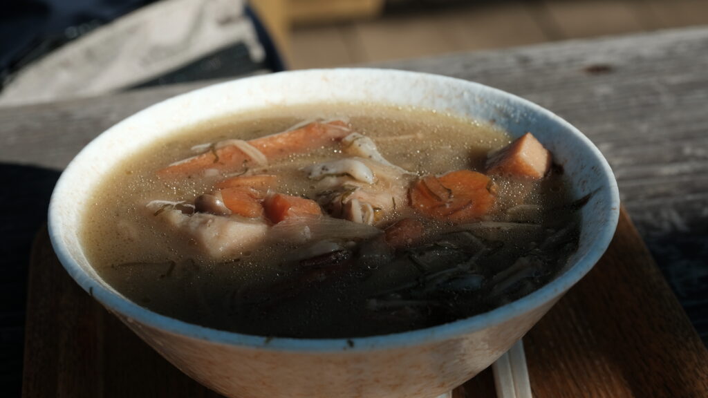 具だくさんのけんちん汁の中の里いもおいしかったですね~。冷えた体が温まりました。