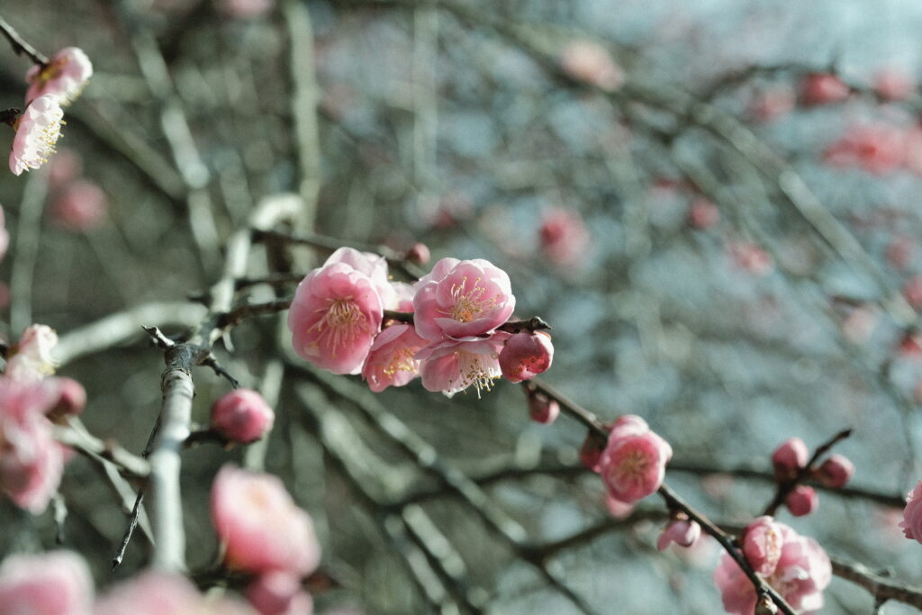 梅園の入口には「満開」の文字。 期待して足を踏み入れると、確かに見事な木もありますが、実はまだまだ蕾(つぼみ)をたっぷり蓄えた木も多く見受けられました。「満開」という言葉に安心せず、これからもっと凄くなるぞという底力を感じる。そんな「本領発揮前」の力強さをX-H1で丁寧に切り取ります。