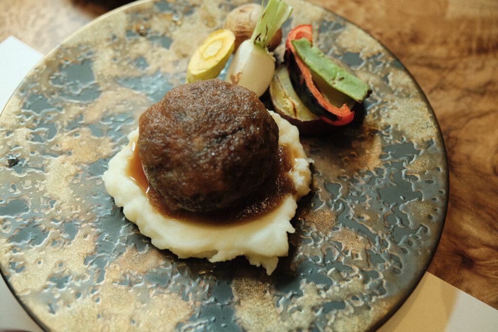 【肉を味わう】極限までつなぎを抑えた職人技 ここのハンバーグは、いわゆる「ふわふわ系」とは対極にあります。和牛肉を包丁で丁寧に叩いてミンチにし、つなぎを最小限に抑えて焼き上げているとのこと。一口食べれば、口の中いっぱいに「肉そのもの」の旨味が広がります。まさに「肉を食べている」という実感を噛み締められる、52歳の胃袋を唸らせる逸品でした。