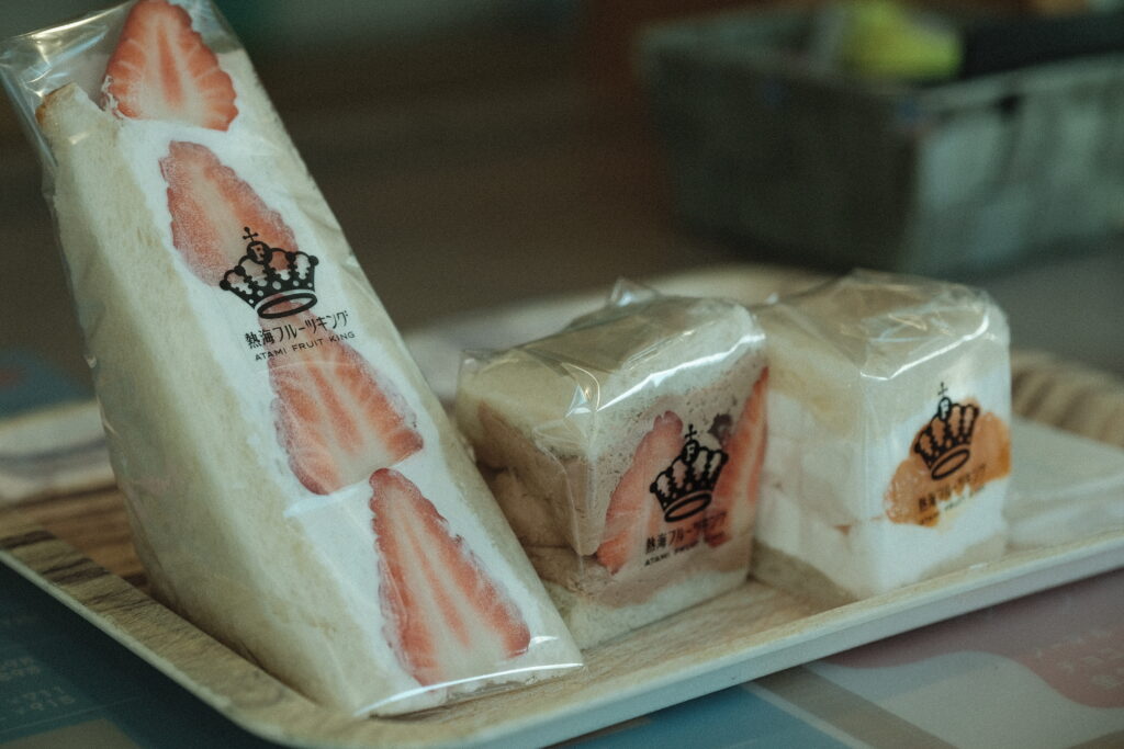 最後は海を見ながら「喫茶サンバード」で締める予定でしたが、あいにく営業時間終了。 しかし、そんなハプニングも旅の醍醐味です。目の前の熱海フルーツサンドを購入し、車内で妻とシェア。4時間、約1万歩。歩ききった体には、この甘さが最高のご褒美となりました。