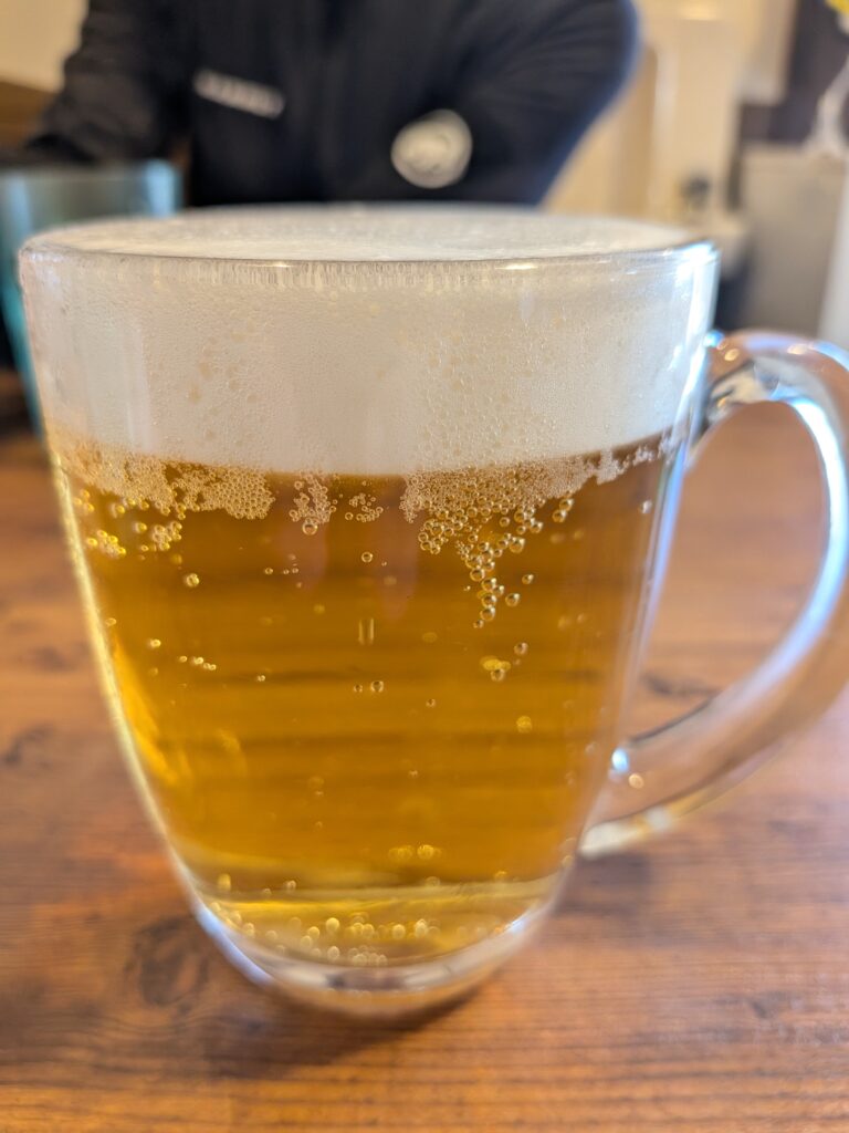 席についてリュックを下ろし、まず注文したのは何と言ってもこれ。 「生ビール」です!