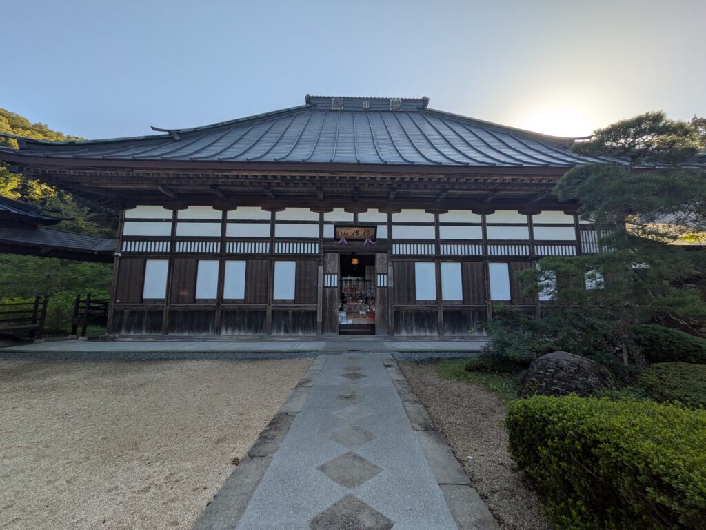 窓からは丁寧にお手入れされた日本庭園やお寺の本堂を眺めることができ、ただ座っているだけで心が洗われるような気分になります。登山で高ぶっていた気持ちが、スッと穏やかになっていくのを感じました。