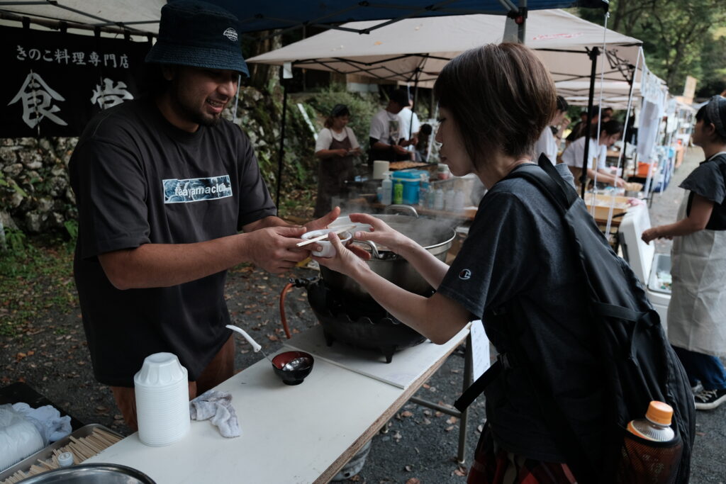 舞茸祭のもう一つの楽しみは、多彩な出店者が織りなす美食の饗宴です。地元からはジビエ料理を提供する「バジス」やクラフトビールの「Wolves Brewing」、そして地元食材を活かした料理を出す「TABA CAFE」などが参加します。さらに東京の有名レストランや、奥多摩や甲州市のクラフトビールやジンの職人たちも加わり、食文化の交差点のような空間が広がります。したがって、訪れる人々は一度にさまざまな味を楽しむことができます。