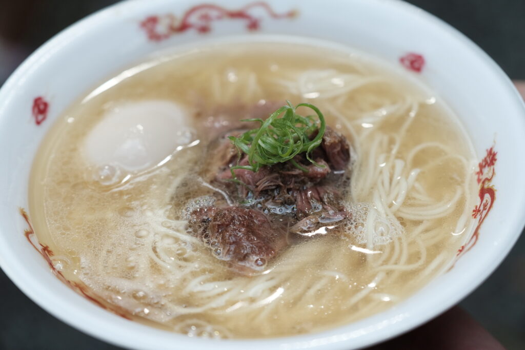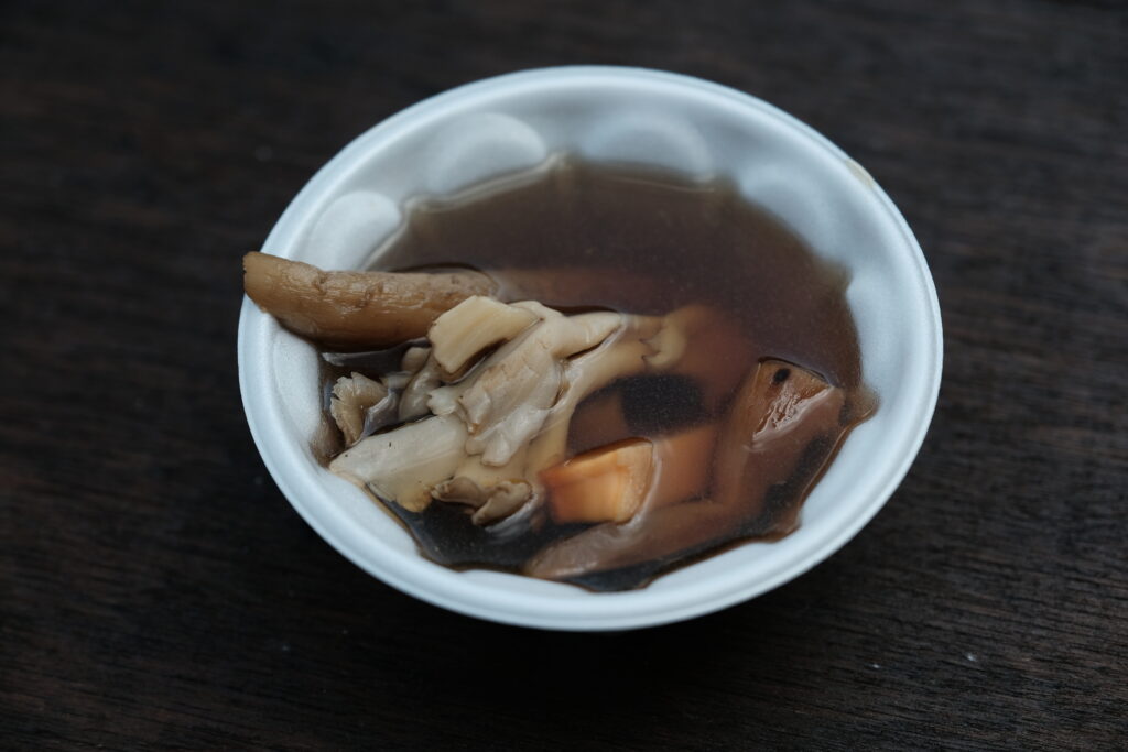 丹波山産舞茸エキスが入った塩ラーメン。フードフェスのブースで食べるレベルではない旨さ