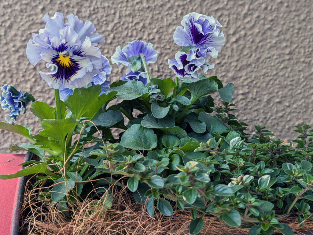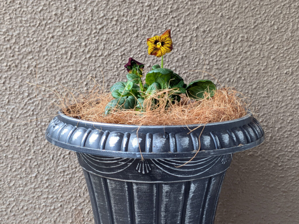 最後は一株植えのビオラ