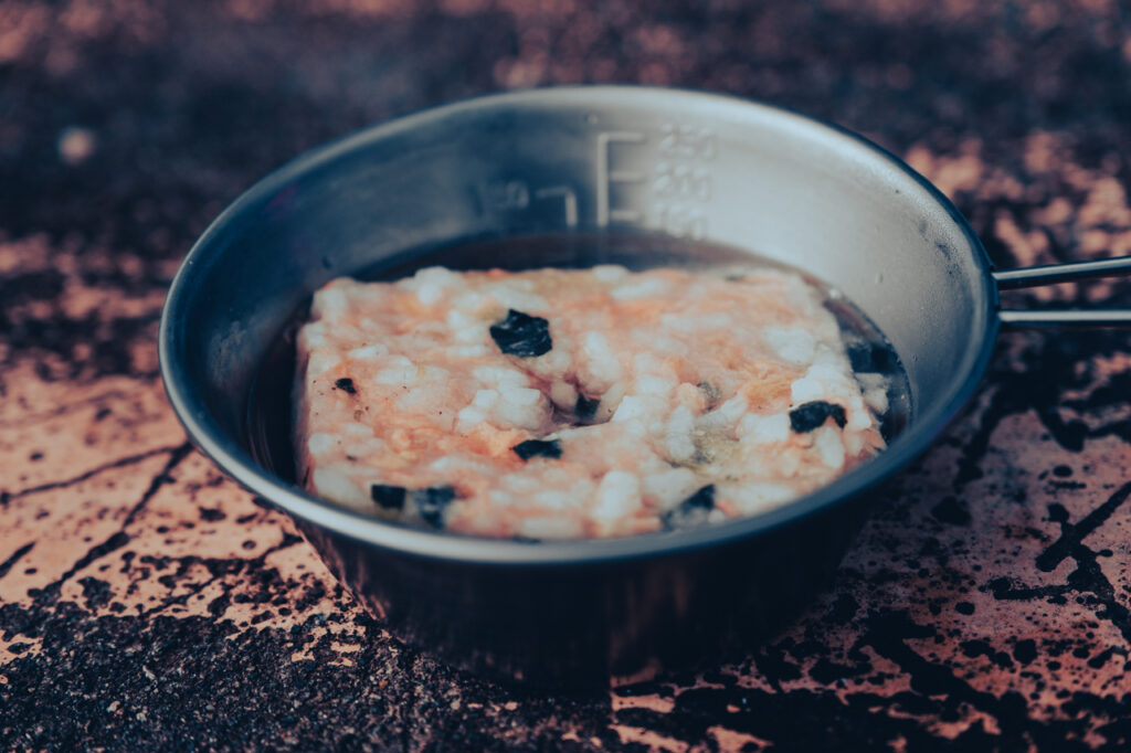 多峯主山の山頂に到着!ここで20分ほど休憩を取りました。 広々とした山頂にはベンチやテーブルもあり、多くのハイカーが休憩しています。52歳の身体に染み渡る水分と、妻と食べる軽食。山で食べるとドライフードも美味しい。