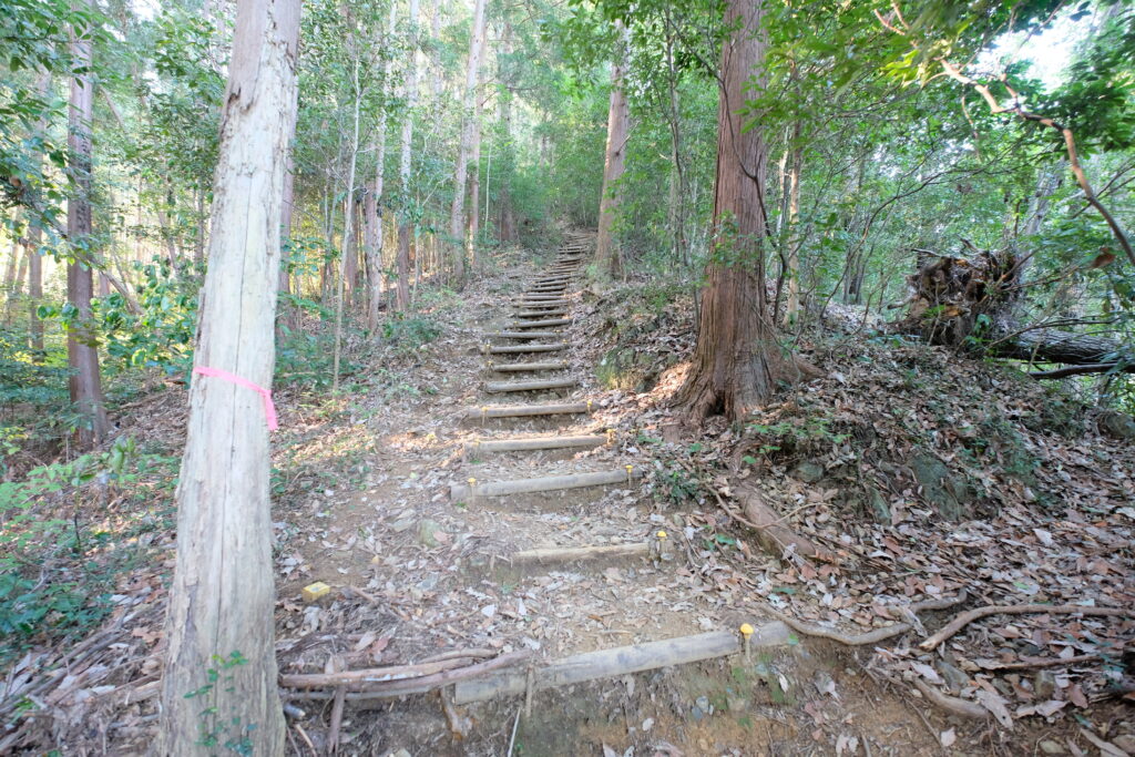低山だからと侮ってはいけません。開始いきなり急登の階段です。これは低山あるあるですよね(笑)