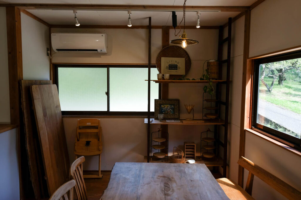 オクムサ・マルシェは、古い納屋をリノベーションした一軒家レストランです。木の温もりが感じられる店内は、自然光と奥武蔵の景観が調和した癒しの空間です。さらに2階には地元の工芸品を展示販売するギャラリーもあり、食と文化の両方を楽しめます。また、駐車場やサイクルラックも完備されており、車や自転車での来訪にも便利です。